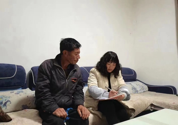 Wang Fumei (right) visits a family, in Butuo County, to learn about the family's condition and basic needs. [Photo/CCTF]
