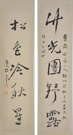 A five-character couplet by Zhang Daqian, Republic of China (1911-49) [Photo/Official WeChat account of the Changzhou Museum]