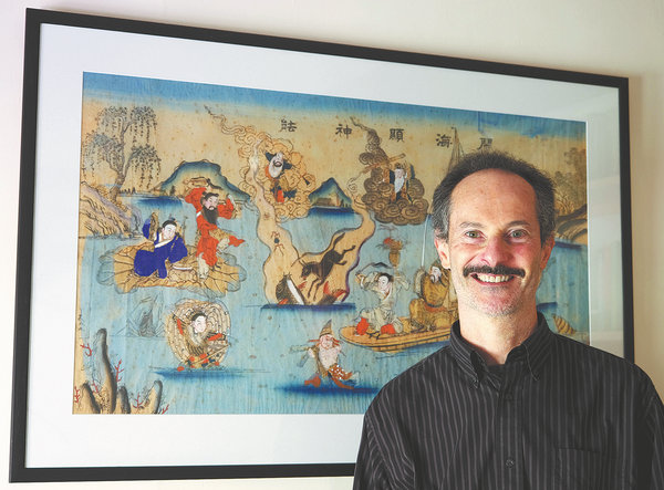 David Leffman stands in front of a favorite print at his home in Yorkshire, England. [Photo by DAVID LEFFMAN/provided to China Daily]