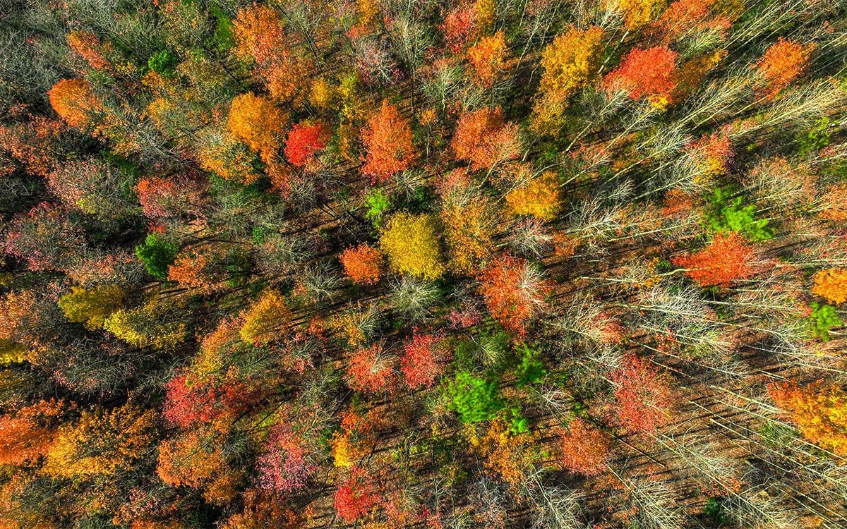 Aerial view of colorful trees on the Xianshan Island in Chun’an county, Hangzhou, Zhejiang province [Photo/IC]