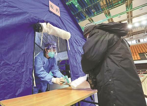 Li Jia, vice-president of Xuanwu Hospital, who is in charge of the makeshift fever clinic in Guang'an Stadium in Xicheng, said it provides medical services to fever patients aged 16 to 65 suffering from respiratory tract infections and who don't have underlying conditions.