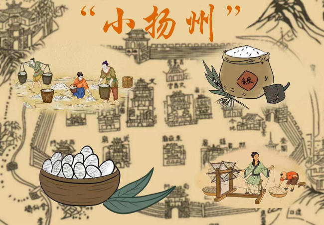 Lyusi became a distribution center for fishing and salt from five provinces in China, while Juegang, known as "Little Yangzhou", became a distribution center for salt, cotton, rice, and cocoons.