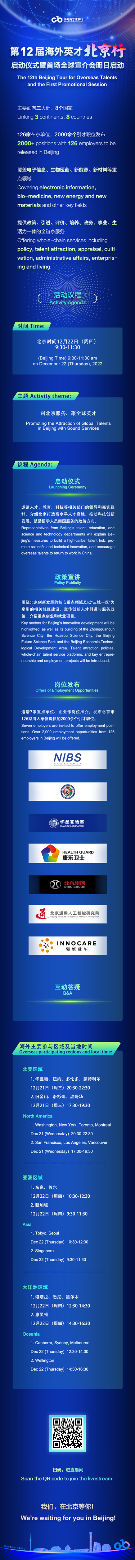 The first promotional session of the 12thBeijing Tour for Overseas Talents will open at 9:30 tomorrow morning.