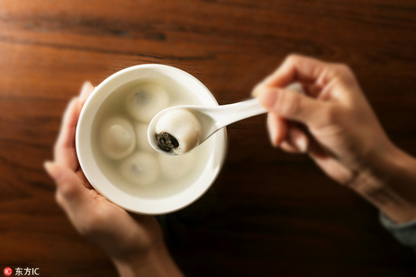 In places such as Shanghai, people eat tangyuan, a kind of stuffed small dumpling ball made of glutinous rice flour, to celebrate Winter Solstice.