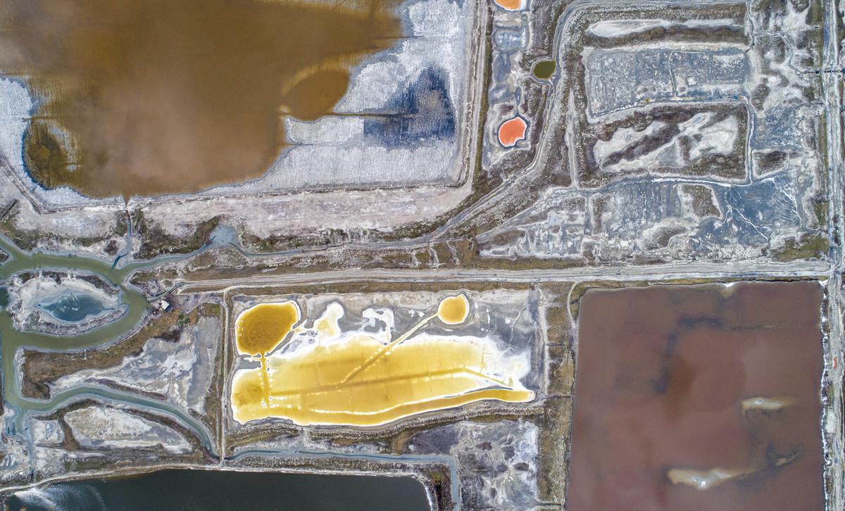 An aerial photo shows a colourful view of of the Salt Lake in Yuncheng, Shanxi province. [Photo provided to chinadaily.com.cn]