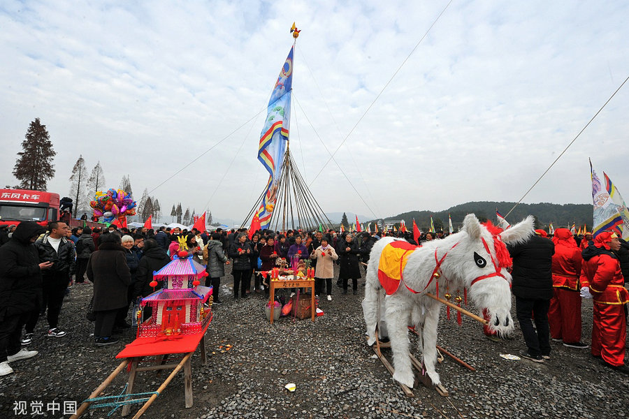 Local people gather together to celebrate the tea harvest during the "tea market" temple fair, Nov 30, 2020. [Photo/VCG]