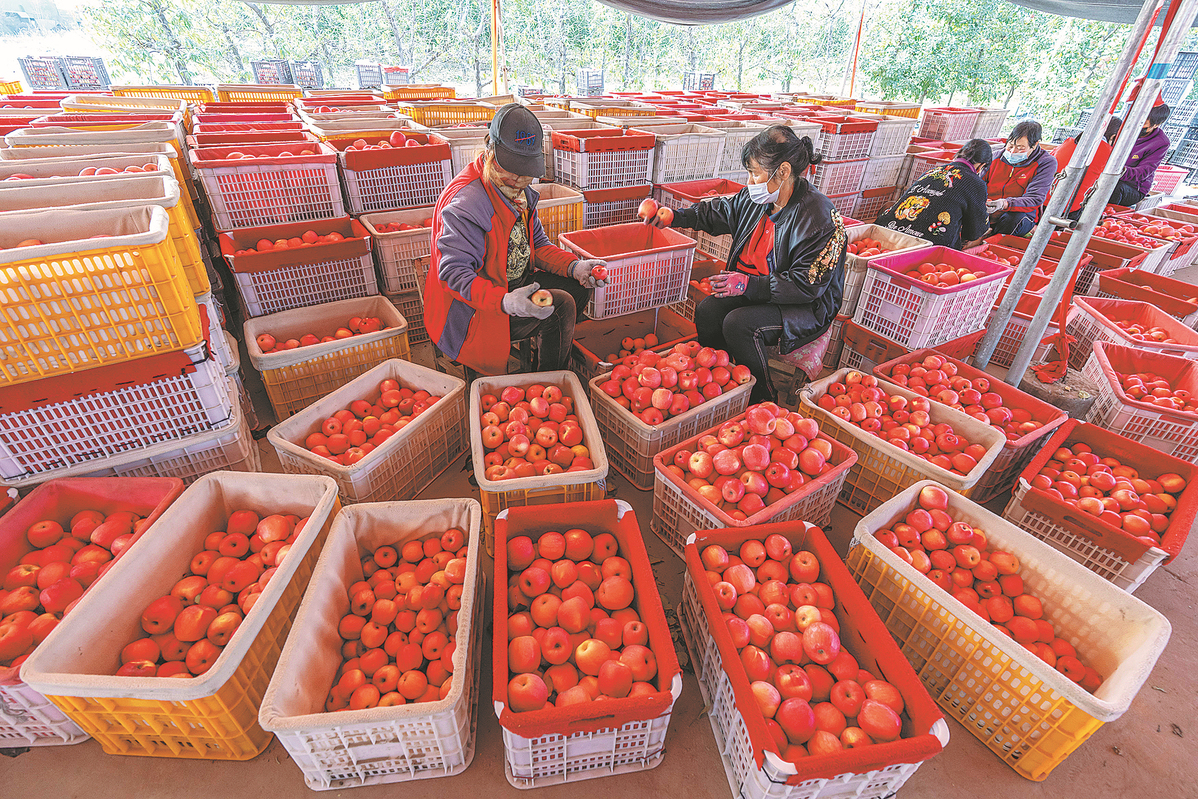 Workers pack apples in boxes in Yuncheng, Shanxi province, in November. [Photo/China Daily]