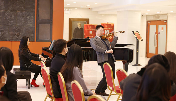 Violinist Yao Liang performs during the news conference of the New Year's concert, co-organized by Beijing Concert Hall and the Austrian embassy in Beijing on Dec 23. [Photo provided to China Daily]