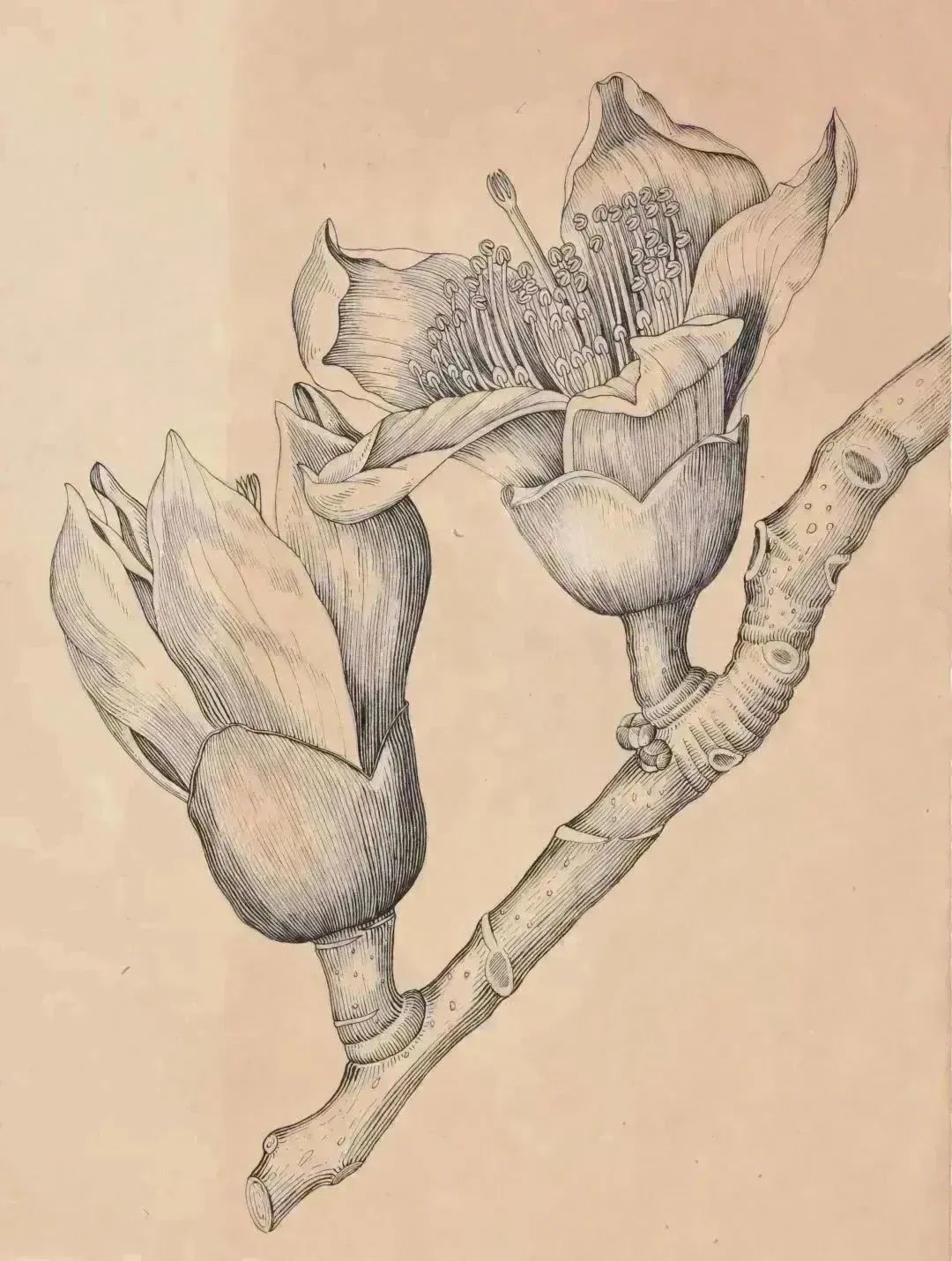 Bombax Ceiba, Feng Zhongyuan (1917-2011), 1960s, from the collection of the South China National Botanical Garden [Photo/Official WeChat account of the Guangzhou Museum of Art]
