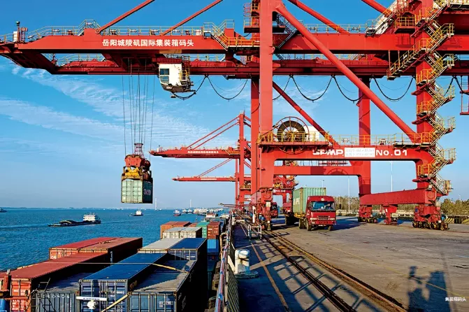 The annual throughput of twenty-foot equivalent units at the Chenglingji port in Yueyang, Hunan province, surpassed 1 million on Wednesday. The port is a key trade center in the Yangtze River Basin. [Photo provided to chinadaily.com.cn]