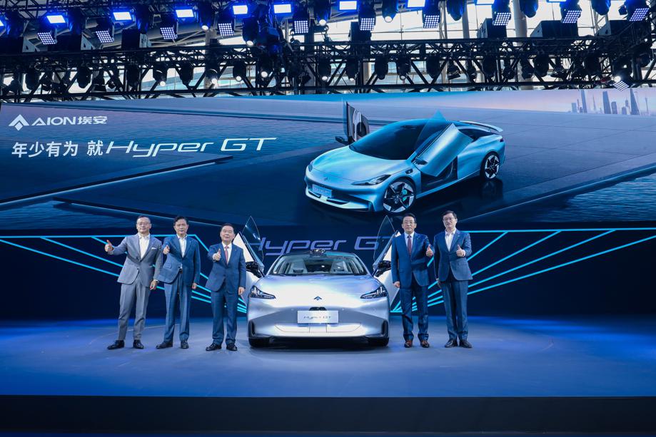 GAC Aion, a subsidiary within the Guangzhou-based GAC Group, also unveiled its latest development during the auto show, Hyper GT, a home-made product challenging Tesla's Model 3.
