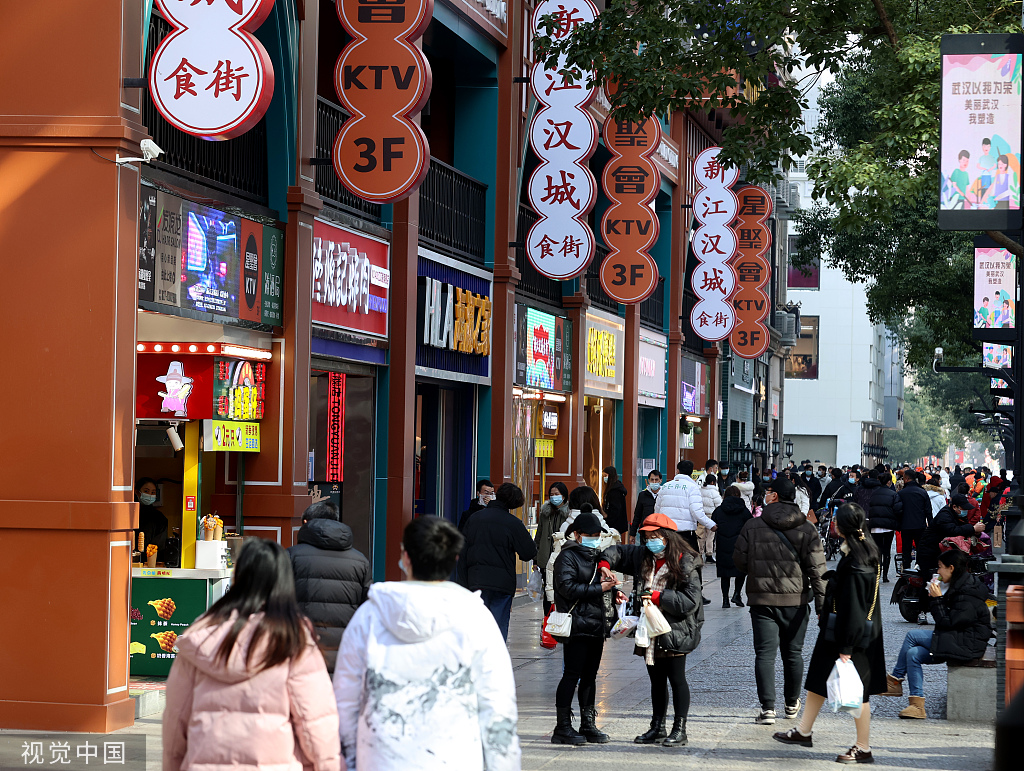 Shoppers on a busy street in Wuhan, Hubei province, Dec 24, 2022. [Photo/VCG]