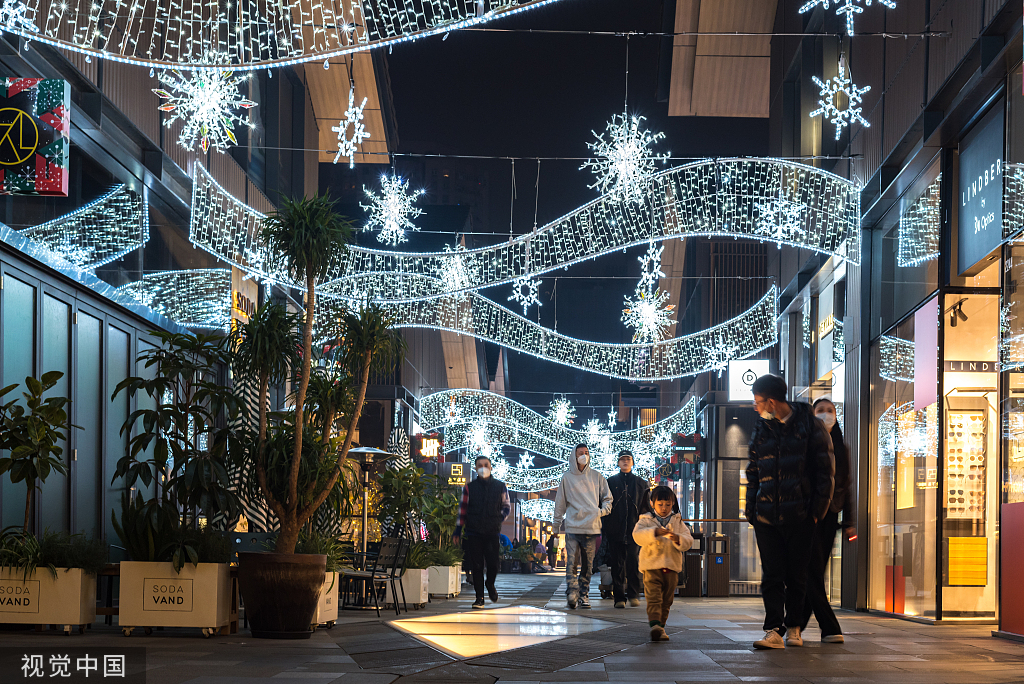 People stroll at a shopping street in Chengdu, Sichuan province, Dec 24, 2022. [Photo/VCG]