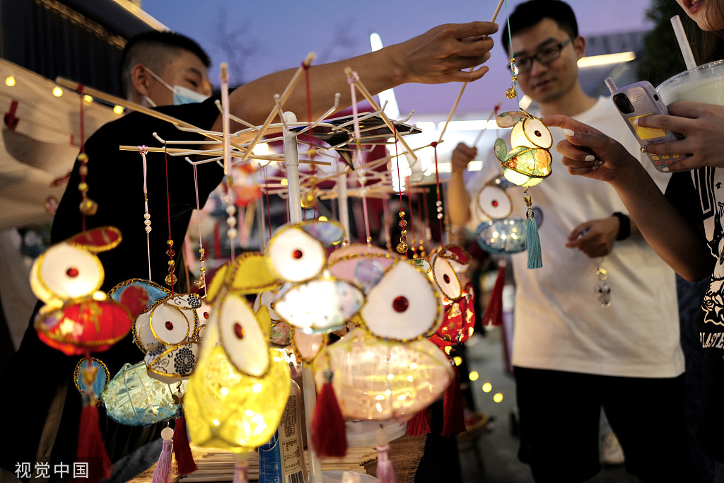 People hang out at a night market in Hangzhou, Zhejiang province on Aug 21, 2022. [Photo/VCG]