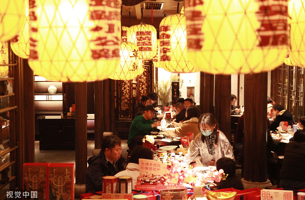 Diners enjoy their food at a restaurant in Nanjing, Jiangsu province, on Jan 2, 2023. [Photo/VCG]