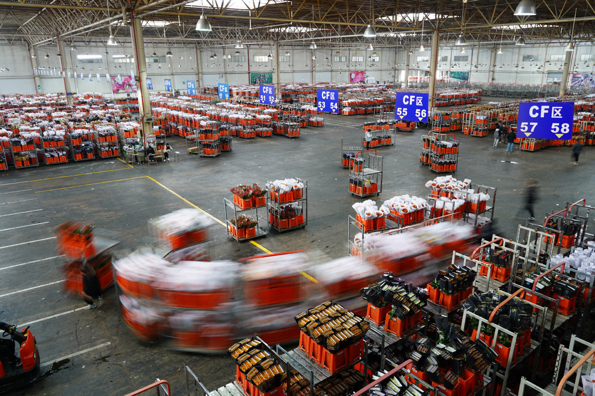 Busy transaction is seen at a flower trading center in Kunming, Yunnan province, on Jan 2, 2023. [Photo/Xinhua]