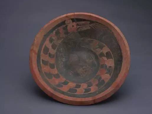 The painted pottery plate, from the permanent collection of the Shanxi Museum, is decorated with a coiled dragon. [Photo/Official WeChat account of the Jinsha Site Museum]