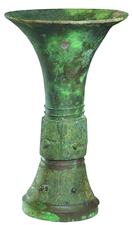 Cultural relics found at the site, including a type of bronze vessel called gu. [Photo provided to China Daily]