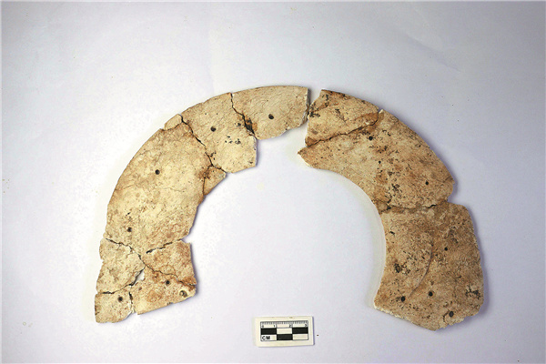 Since 2020, the foundations and charred earthen ruins of a huge structure for public use, estimated to cover more than 5,500 square meters, have been gradually unearthed at the site. Other key findings include pottery shards and a stone yue — an axe-shaped ceremonial artifact indicating power, and the largest of its type from China's Neolithic period.
