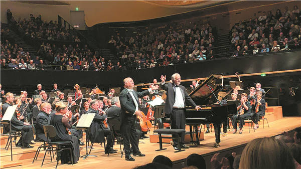 Conductor Xu Zhong takes the applause after an Orchestra de Paris concert at La Philharmonie de Paris, that performed works of Ravel and Rachmaninov in 2019. He is expected to collaborate with the orchestra at the same venue in March. [Photo provided to China Daily]
