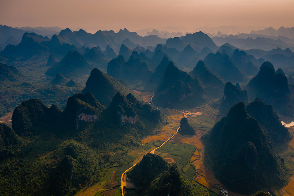 Sunrise drone shot at Yangshuo, Guilin, Guangxi Zhuang autonomous region [Photo/Amlan Ronald Aparajit]