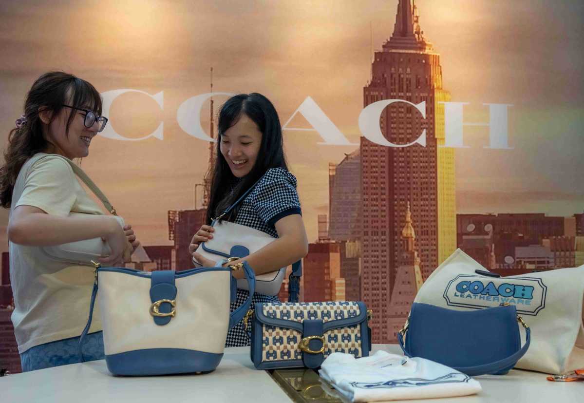 Customers visit a Coach store at an expo in Haikou, Hainan province. YUAN CHEN/FOR CHINA DAILY