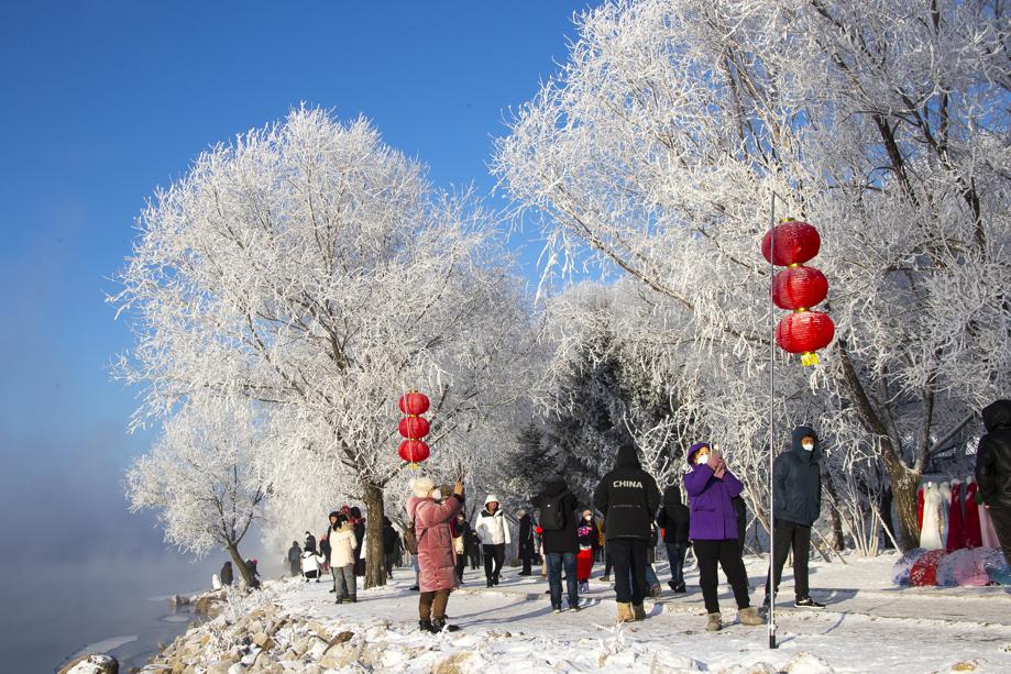 Residents and tourists in Jilin city, Jilin province, welcomed their first rime ice of the new year recently. [Photo by Dong Yuxin/For chinadaily.com.cn]