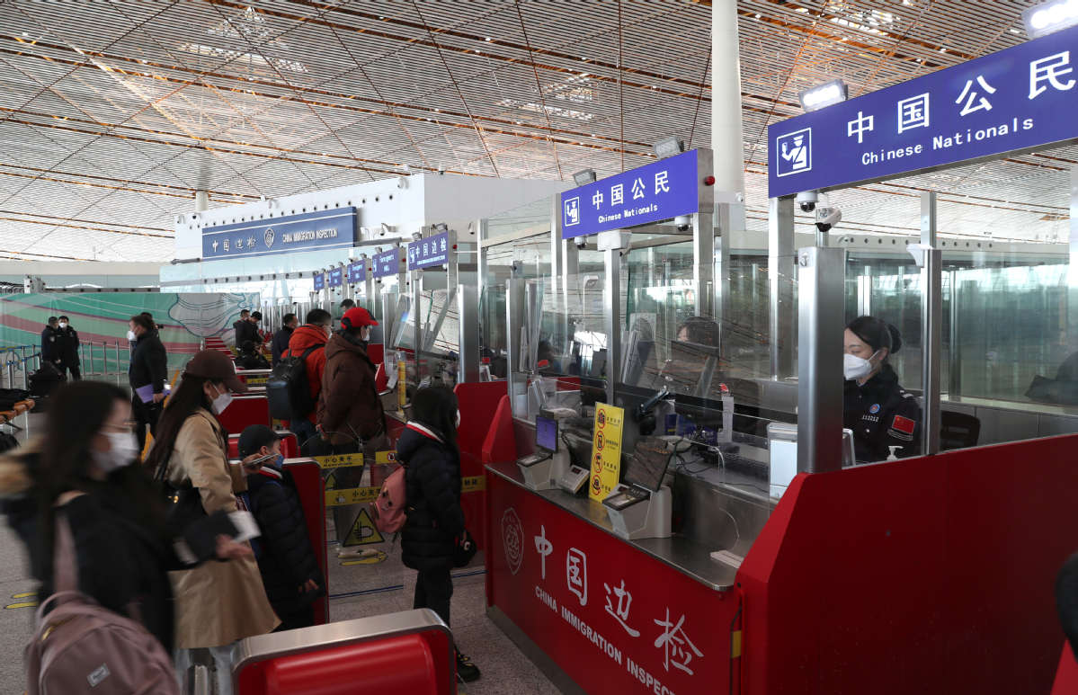 Passengers queue up to go through entry procedures at the Beijing Capital International Airport, Jan 8, 2023. [Photo by Zou Hong/chinadaily.com.cn]