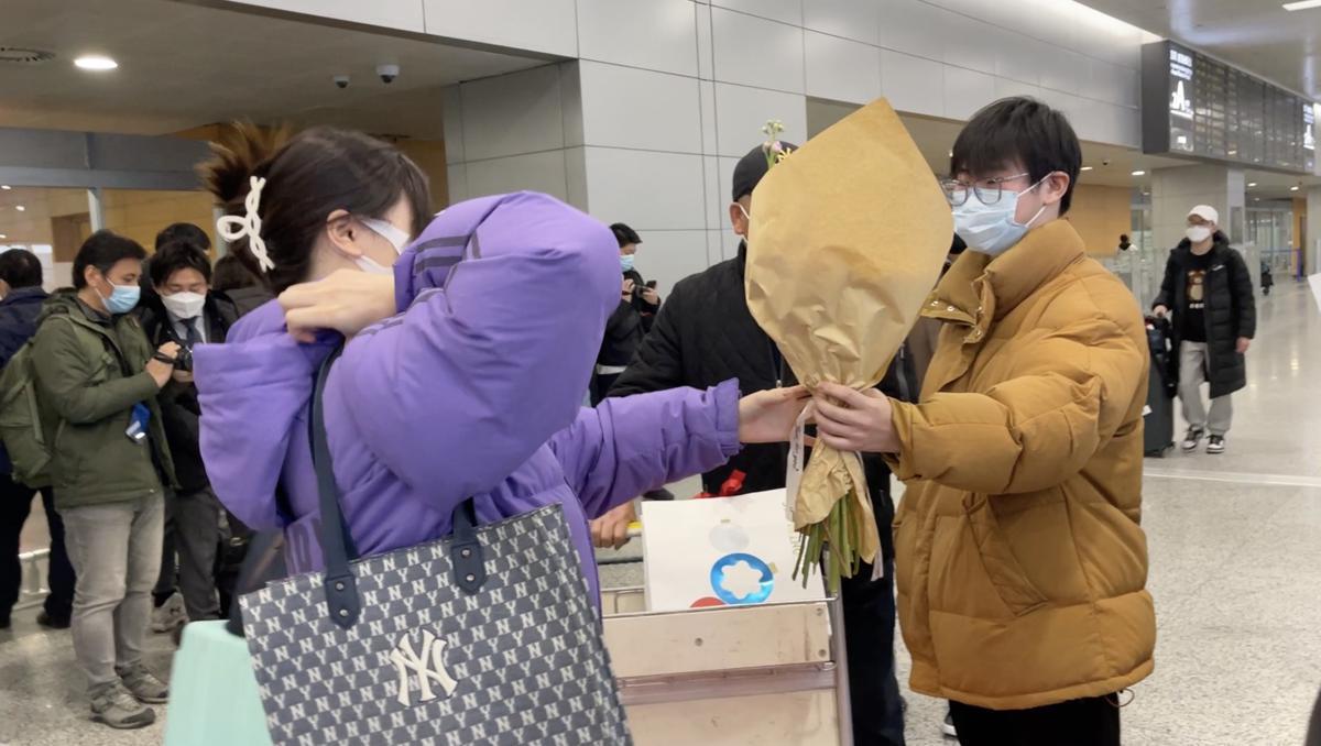 Inbound travelers arriving at the Shanghai Pudong International Airport are greeted by their family members and beloved ones on Jan 8. [Photo by He Qi/chinadaily.com.cn]