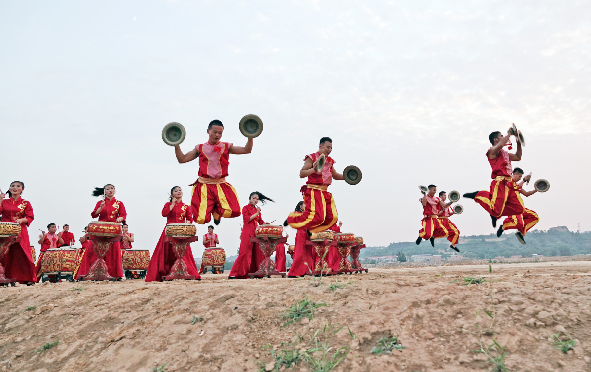 Drummers from an art troupe in Jiangzhou, Shanxi province perform classical music to celebrate the 5th Chinese Farmers Harvest Festival. [Photo/Gao Xinsheng]