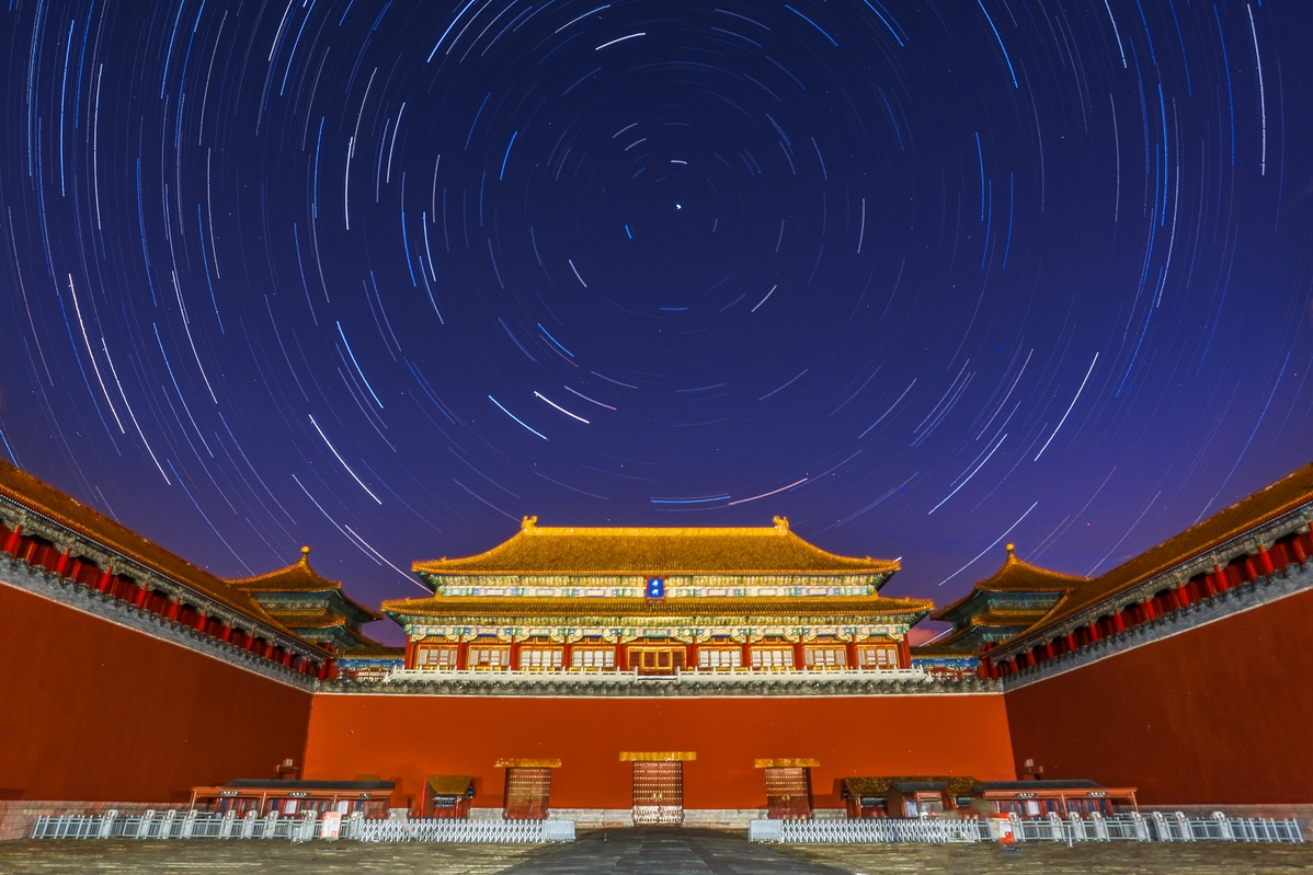Stars illuminate the Meridian Gate (Wumen) of the Forbidden City. [Photo/Wu Hui]
