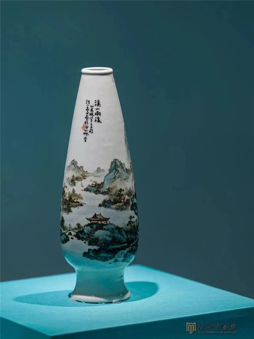Famille-rose vase decorated with a landscape painting, Wang Xiaoting (1906-1970), 1925, from the collection of the Jingdezhen China Ceramics Museum [Photo/Official WeChat account of the Changsha Museum]