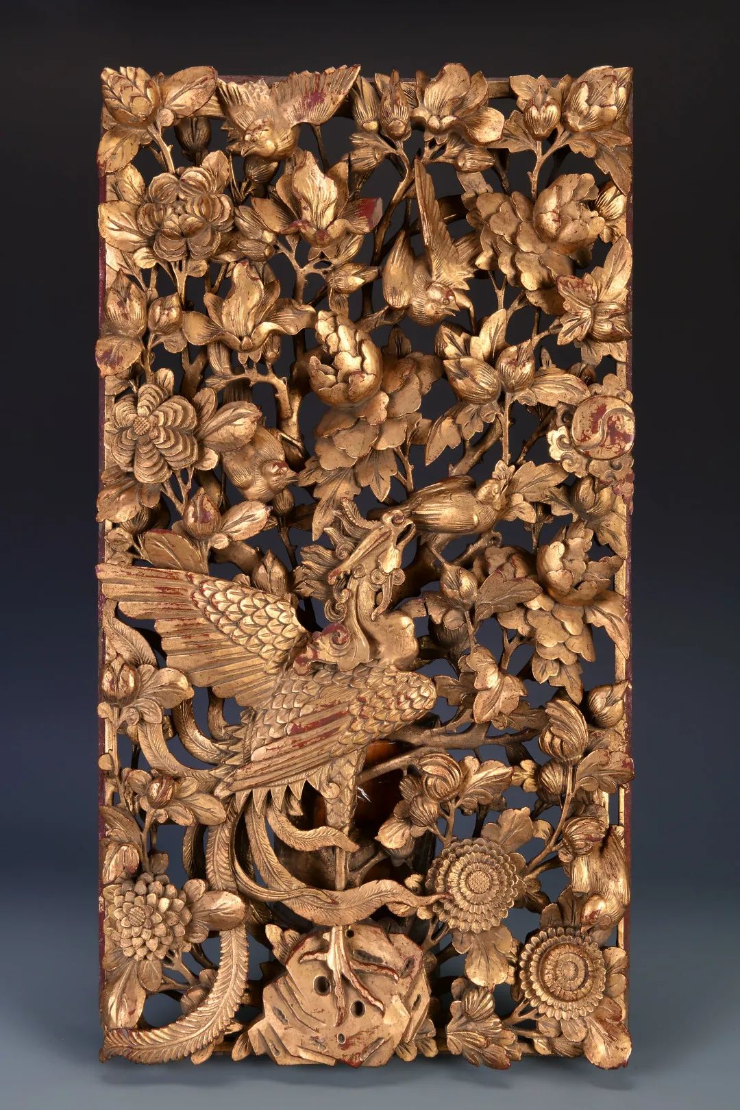 Gold lacquered carved wooden plaque with phoenix and peony patterns, Republic of China [Photo/Official WeChat account of the Guangdong Folk Craft Museum]