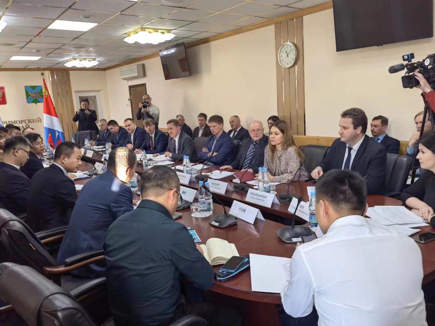 Members of the delegation communicate with the International Cooperation Department of Primorsky Krai in Russian on Tuesday. [Photo provided to chinadaily.com.cn]