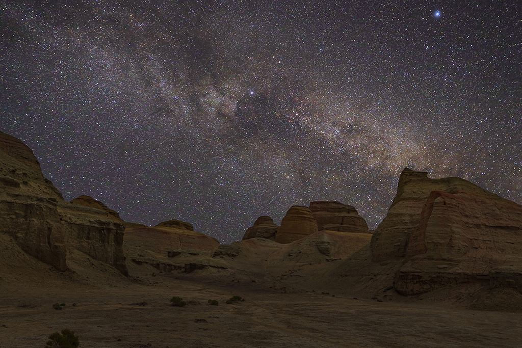 The Flaming Mountains in Xinjiang Uygur autonomous region illuminated by stars at night. [Photo/Zhang Jinglin]