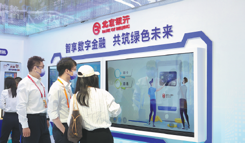 Visitors learn about Bank of Beijing's digital and green financial technologies during the China International Fair for Trade in Services held in Beijing in September. ZHANG XIAOYAN/FOR CHINA DAILY