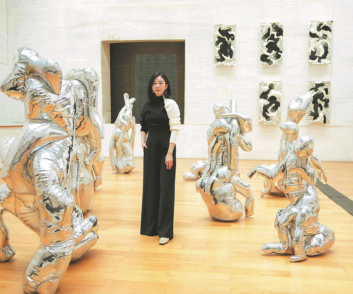 Zhou Hehe's sculptures are huge in size and exude a sense of power. Her works on show, Matrix and Energy Tower, remind viewers of the aftermath of a volcanic eruption, accompanied by thunder and lightning. For Zhou, it represents the repeated process of life's destruction and rebirth. She also produced a row of sculptures, each in the shape of human lungs, to encourage viewers to reflect on the impact of COVID-19.