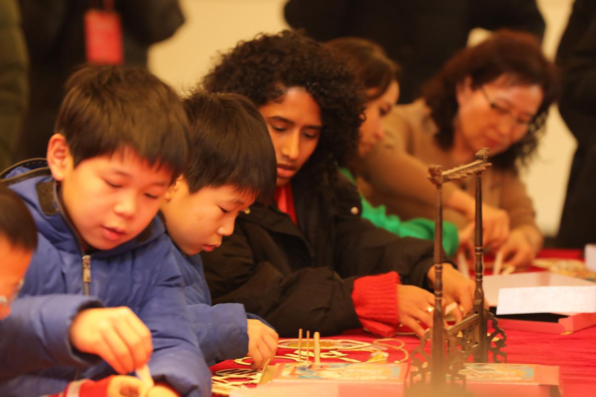 Foreigners living in Baoding, North China's Hebei province, make festive lanterns with some children in Jingxiu district on Saturday to celebrate Little New Year, or