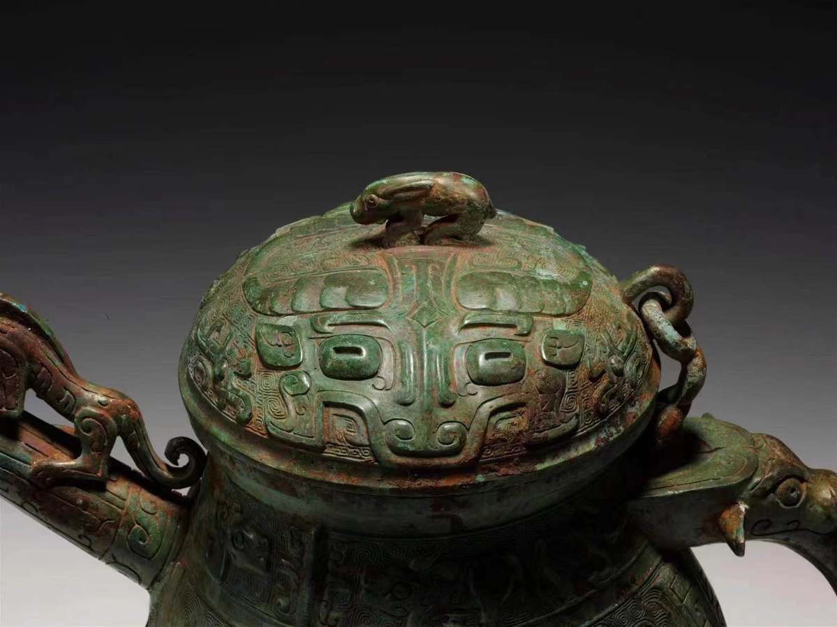Western Zhou Dynasty wine container with rabbit-shaped lid handle