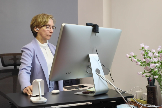 Hang Amatak (front) works in his office in Phnom Penh, Cambodia, on the new Phnom Penh International Airport project. [Photo provided to China Daily ]
