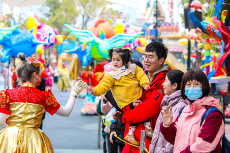 Happy Valley in Wuhan attracted many visitors on Jan 22, the first day of the Chinese New Year. They looked at the festival lanterns, and at night watched a drone light show in which thousands of unmanned drones lit up the sky with images of the East Lake, rabbits, and blessings.