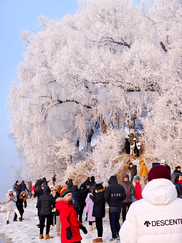 On Jan 27, Wusong Island in Northeast China’s Jilin province showcased spectacular rime scenery. At around 10 am, as the rising sun gradually dispersed the fog, the tree branches were covered with frost flowers, drawing tourists for photo ops.