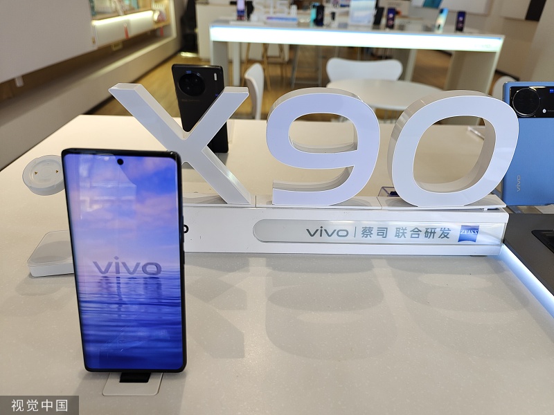 A Vivo mobile phone is on display in Beijing, on Dec 6, 2022. [Photo/VCG]