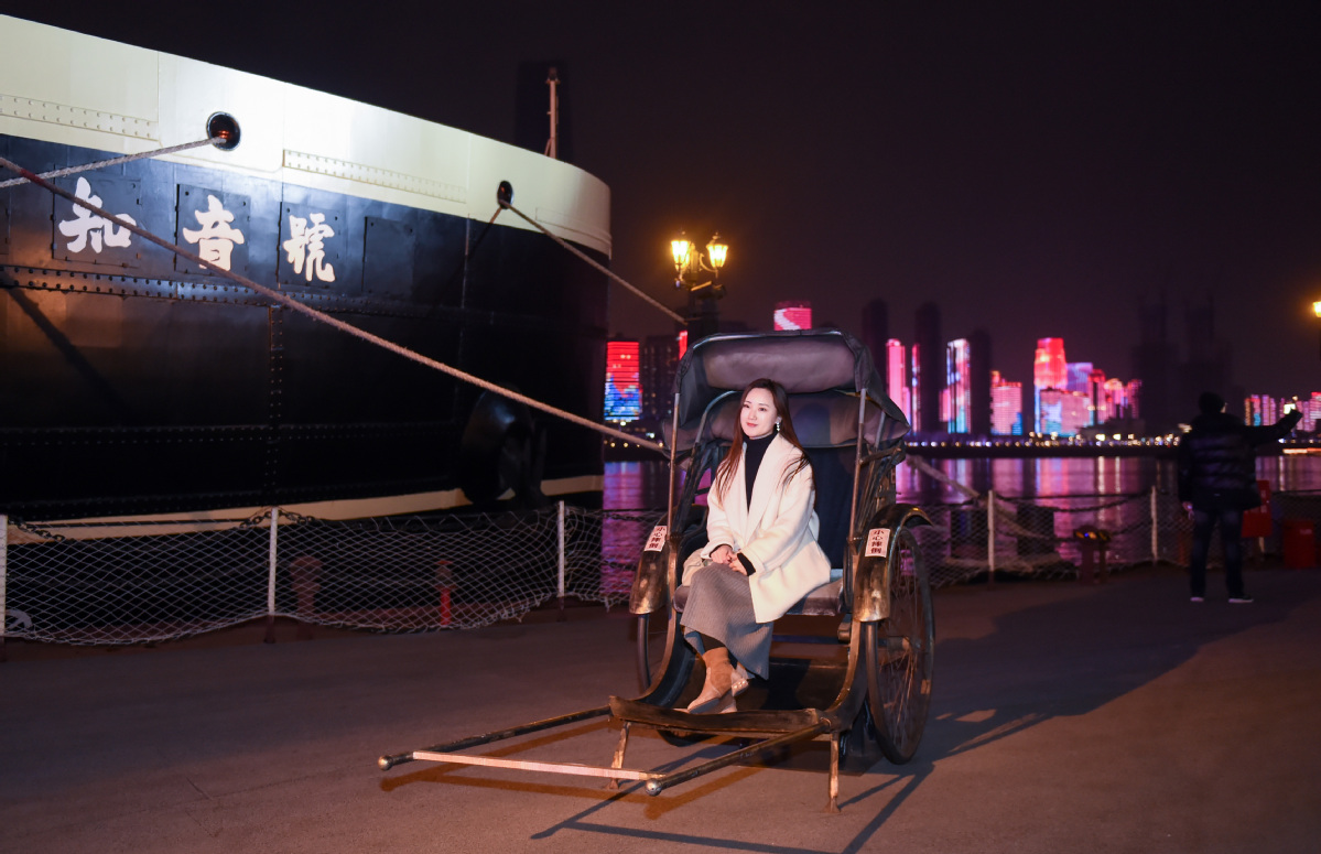 "The night views in Wuhan are as good as they are in Paris or London," a tourist surnamed Zhou said. To add personality to a cruise, tourists can rent cheongsam clothing at the pier before boarding.