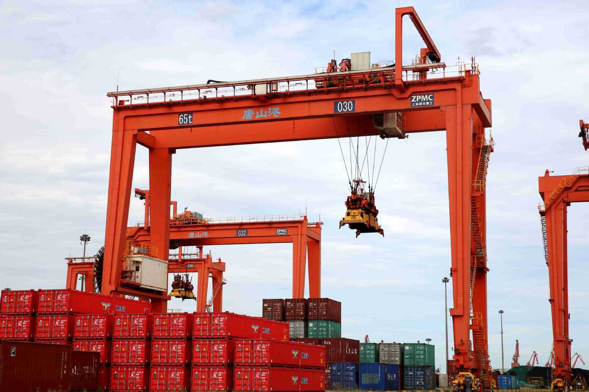 The photo shows work underway at Tangshan Port, North China's Hebei province.[Photo provided to chinadaily.com.cn]