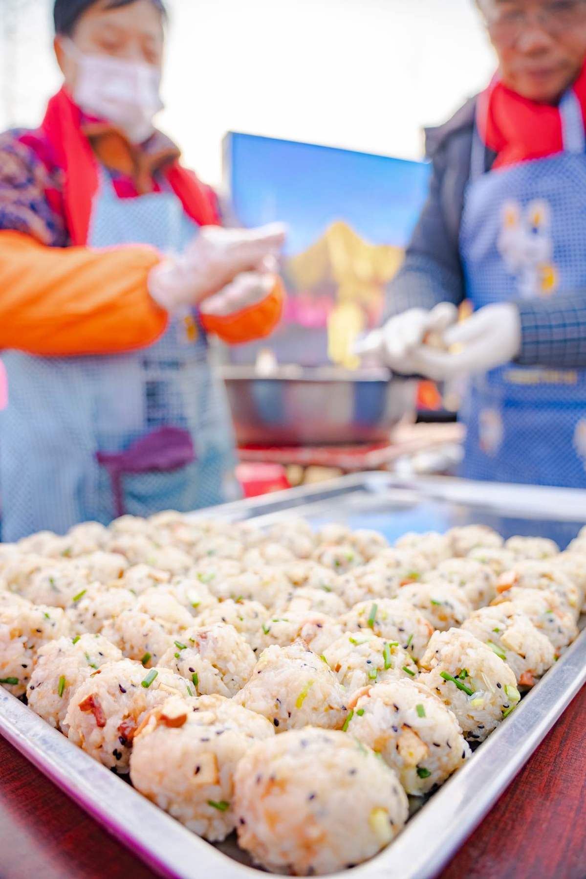 People make rice balls in a community in Wuhan, Hubei province. [Photo provided to chinaservicesinfo.com]