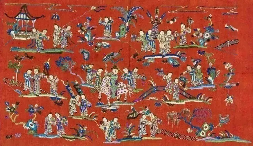 Red silk embroidery door decoration, Qing Dynasty, from the collection of the Changsha Museum [Photo/Official WeChat account of the Changsha Museum]