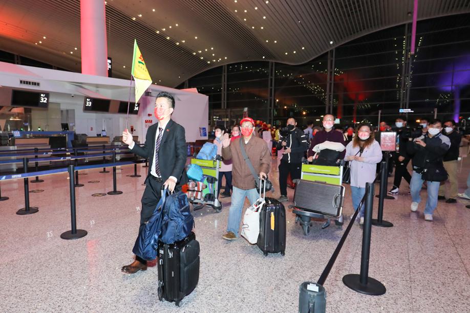 Chinese tourists prepare to board an Emirates Airlines flight at Guangzhou Baiyun International Airport early on Monday. [Photo provided to chinadaily.com.cn]