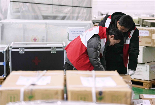 The first batch of medical materials from the Red Cross Society of China to earthquake-hit areas in Syria departs Beijing on Thursday morning. [Photo by Red Cross Society of China/Provided to chinadaily.com.cn]
