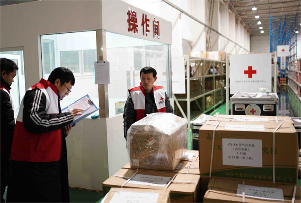 The first batch of medical materials from the Red Cross Society of China to earthquake-hit areas in Syria departs Beijing on Thursday morning. [Photo by Red Cross Society of China/Provided to chinadaily.com.cn]